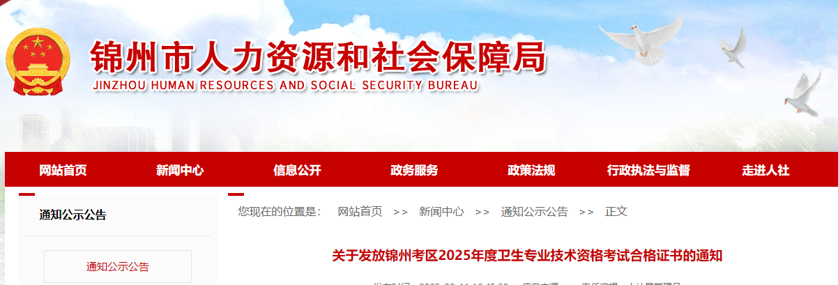 關(guān)于發(fā)放錦州考區(qū) 2025 年度衛(wèi)生專業(yè)技術(shù)資格考試合格證書的通知錦州人事考試服務(wù)中心定于2025年8月20日開始發(fā)放2025 年度衛(wèi)生資格考試合格證書。