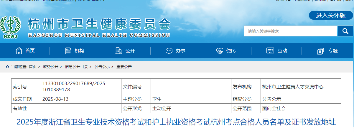 現(xiàn)將2025年度浙江省衛(wèi)生專業(yè)技術(shù)資格考試和護(hù)士執(zhí)業(yè)資格考試杭州考點(diǎn)合格人員證書領(lǐng)證地址予以公布,請(qǐng)相關(guān)人員及時(shí)到指定地點(diǎn)領(lǐng)?。ㄔ斠姼郊?。