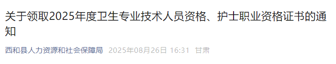 隴南西和縣關(guān)于領(lǐng)取2025年度藥學(xué)職稱資格證書的通知