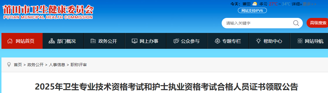 - · 【莆田仙游縣】2025年衛(wèi)生資格考試證書(shū)發(fā)放通知