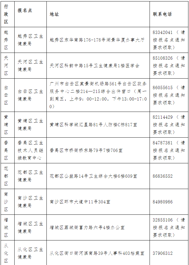 各報名點。從即日起,請廣州考點屬下各報名點派人到廣州衛(wèi)生技術(shù)資格考試中心(荔灣區(qū)西華路534-536號)領取本報名點合格人員的資格證書和《報名申請表》,并及時下發(fā)至相關(guān)單位或個人,同時做好簽收記錄。