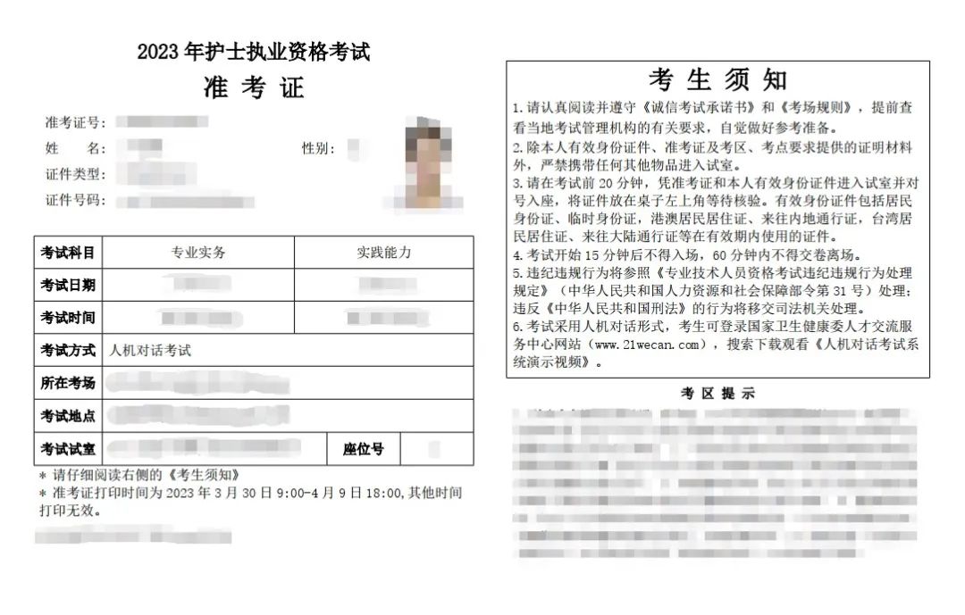 (護士執(zhí)業(yè)資格考試準考證圖例)