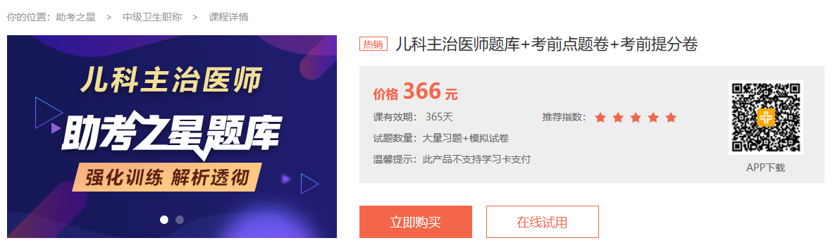 兒科主治醫(yī)師考試助考之星題庫+考前金題卷+考前??季?,緊扣考試大綱、考試教材,符合考試考試題型與考試科目。復(fù)習(xí)輔導(dǎo)資料豐富,免費試用、試題庫大,輔導(dǎo)軟件收錄考前沖刺題、歷年考點練習(xí)題等,并提供專業(yè)級解題方法、答題技巧、考試要點精解。提高您考試的應(yīng)試能力,輔導(dǎo)您考試成功。