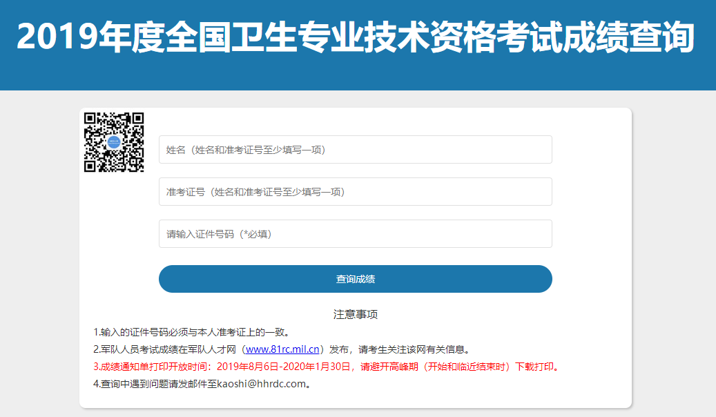 2019年兒科主治醫(yī)師成績通知單打印開放時間:2019年8月6日-2020年1月30日,請避開高峰期(開始和臨近結(jié)束時)下載打印。