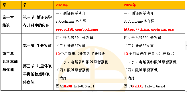 2024年兒科主治醫(yī)師考試教材公布了,經(jīng)醫(yī)學(xué)教育網(wǎng)專(zhuān)業(yè)教務(wù)校對(duì)發(fā)現(xiàn)了部分變動(dòng),具體內(nèi)容如下 :