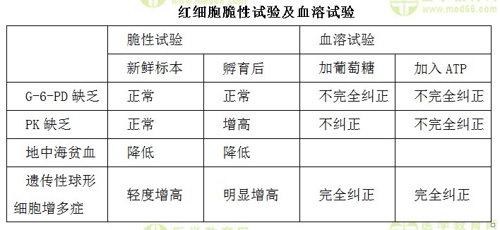 (3)紅細(xì)胞脆性試驗(yàn)、血溶試驗(yàn):各病試驗(yàn)結(jié)果見(jiàn)表。