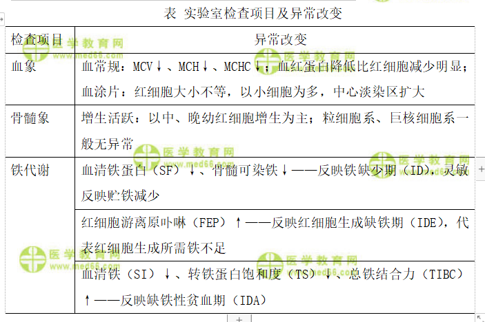 一、【問題】缺鐵性貧血驗室檢查項目及異常改變是什么?