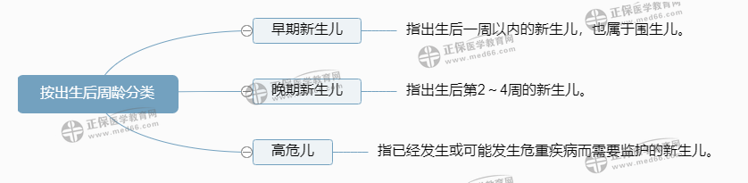 | 早期新生兒 | 指出生后一周以內(nèi)的新生兒,也屬于圍生兒。由于處于子宮內(nèi)、外環(huán)境轉(zhuǎn)變階段,體內(nèi)臟器發(fā)育尚不完善,其發(fā)病率與死亡率均較高,需加強(qiáng)監(jiān)護(hù)及護(hù)理 |