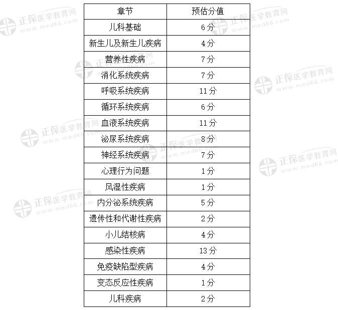 為了幫助各位2022年兒科主治醫(yī)師考生更好的復(fù)習備考,醫(yī)學教育網(wǎng)整理專門整理了2022兒科主治醫(yī)師考試《相關(guān)專業(yè)知識》各章節(jié)預(yù)估分值,各位考生快快收藏起來吧! 【醫(yī)學教育網(wǎng)原創(chuàng)·轉(zhuǎn)載請注明出處】