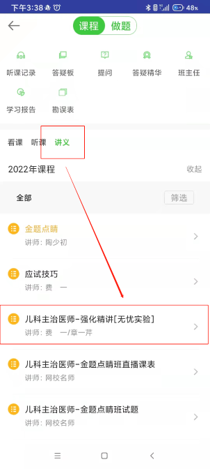 三、點擊“講義-->2022年課程”,選擇要下載的課程