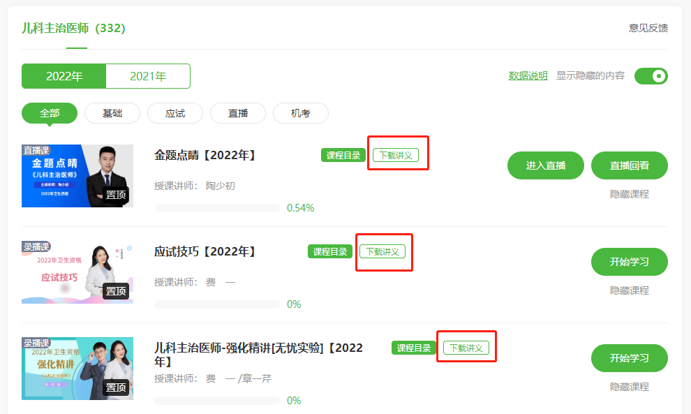 一些已經(jīng)購買兒科主治醫(yī)師課程的學(xué)員表示,不知道課程講義該怎么下載,課程講義下載入口在哪?為了幫助各位考生更高效、便捷的學(xué)習(xí),小編為大家整理出2022年兒科主治醫(yī)師課程電腦端、手機(jī)端、APP端的講義下載/閱讀流程,希望對大家有所幫助!