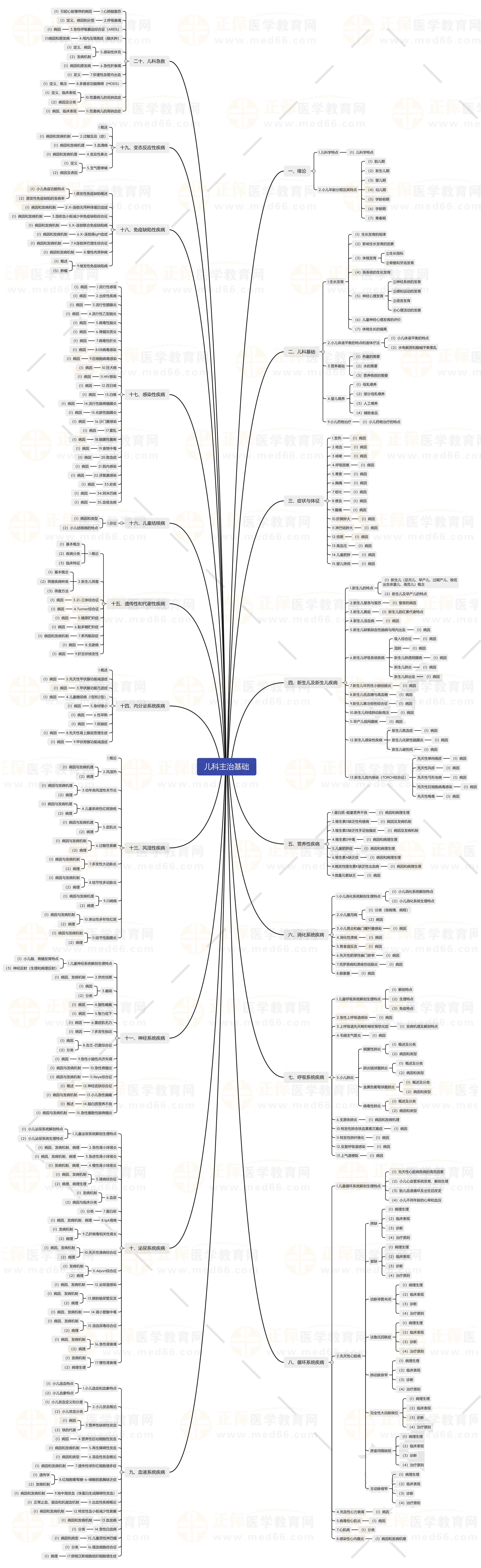 兒科主治醫(yī)師考試實行全國統(tǒng)一組織、統(tǒng)一考試時間、統(tǒng)一考試大綱、統(tǒng)一考試命題、統(tǒng)一合格標(biāo)準(zhǔn)的考試制度,原則上每年進(jìn)行一次。2024年兒科主治醫(yī)師考試新考期已經(jīng)開始了,為了幫助各位考生理清考試知識點脈絡(luò),更有針對性復(fù)習(xí),醫(yī)學(xué)教育網(wǎng)為大家整理兒科主治醫(yī)師《相關(guān)專業(yè)知識》知識點地圖如下: