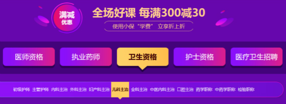 兒科主治課程:無(wú)憂直達(dá)班、超值精品班均參與每滿300減30活動(dòng),可與小保學(xué)費(fèi)疊加使用,優(yōu)惠優(yōu)惠再優(yōu)惠!