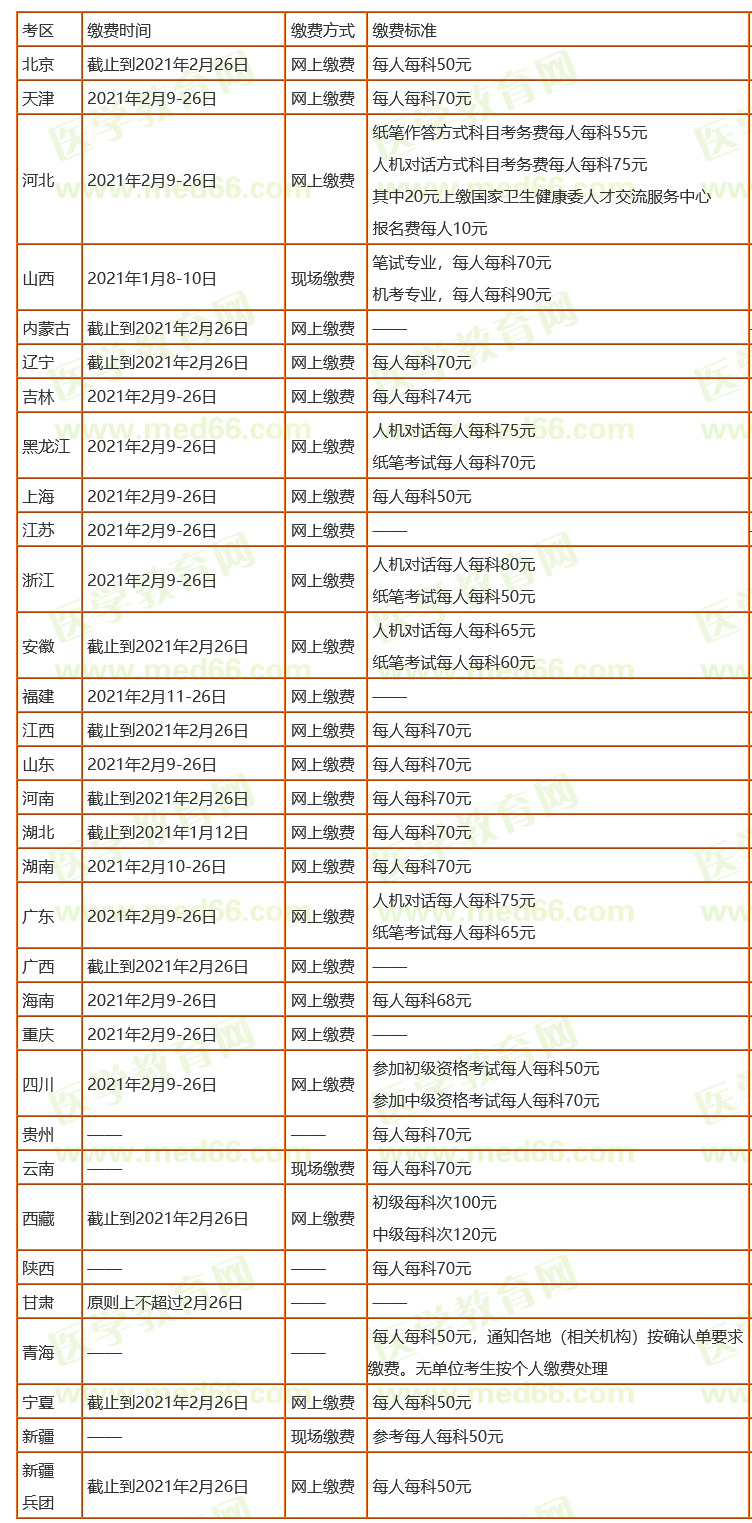 2021年婦產(chǎn)科主治醫(yī)師報名費(fèi)是多少?不同地區(qū)針對衛(wèi)生資格報名費(fèi)要求不同,為幫助大家了解各地情況,特整理如下匯總內(nèi)容,如果您在匯總信息中沒有看到所在地區(qū)2021年婦產(chǎn)科主治醫(yī)師考試報名繳費(fèi)標(biāo)準(zhǔn),請同時留意各地衛(wèi)生相關(guān)部門官方通知。