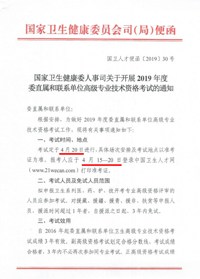 4.各單位應(yīng)于4月1日前網(wǎng)上確認(rèn)本單位報考人員,并將報考材料統(tǒng)一報國家衛(wèi)生健康委人才交流服務(wù)中心,逾期不予受理。