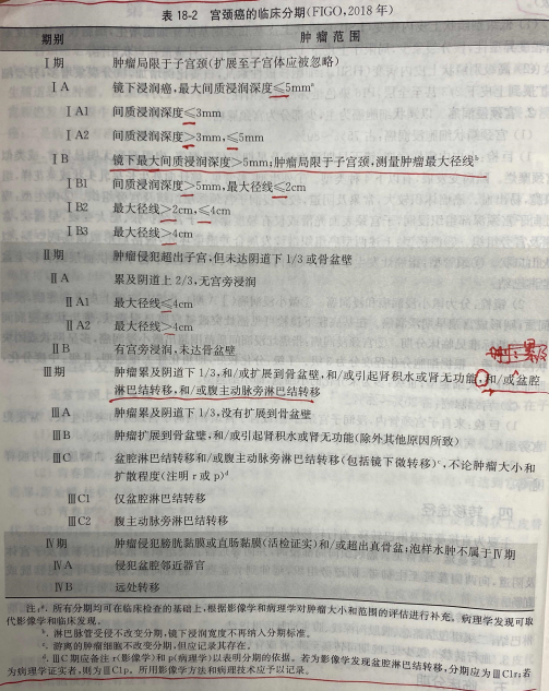 2023:表18-2宮頸癌的臨床分期(FIGO2018年)