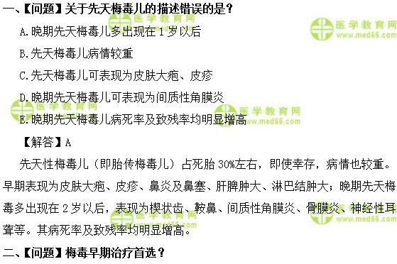 一、【問(wèn)題】關(guān)于先天梅毒兒的描述錯(cuò)誤的是?