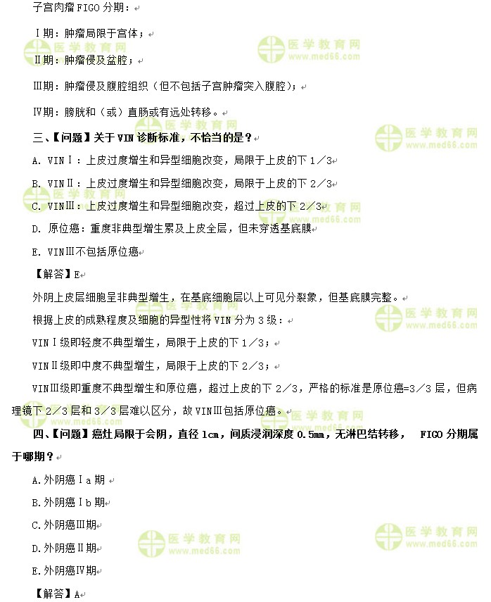 四、【問題】癌灶局限于會(huì)陰,直徑lcm,間質(zhì)浸潤(rùn)深度0.5mm,無(wú)淋巴結(jié)轉(zhuǎn)移, FIGO分期屬于哪期?