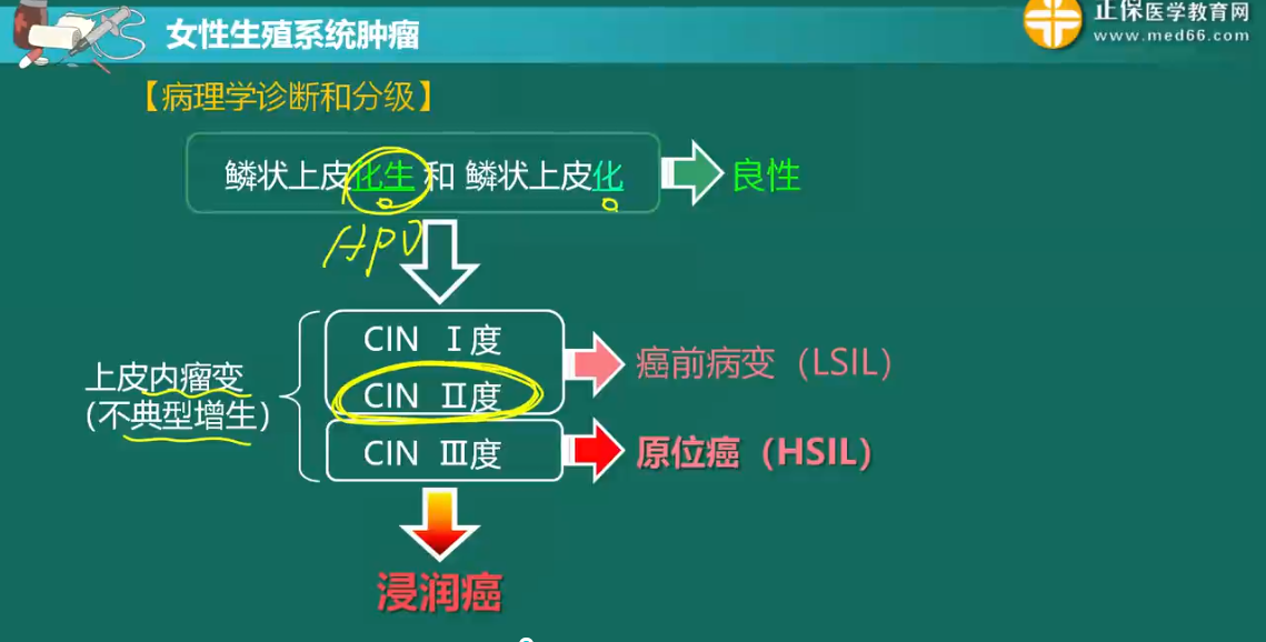 CIN也就是宮頸上皮內(nèi)瘤變,也是婦產(chǎn)科常見的考點之一。因為部分可進展為宮頸癌。所以在病因機制方面和宮頸癌相同。此部分的考點常見的有疾病的病因、診斷、病理學分級、輔助檢查和治療等。常見于記憶性的考察。
