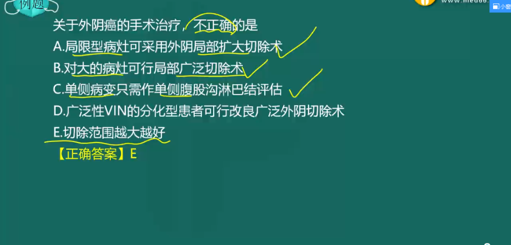 外陰癌相對(duì)少見(jiàn),占女性生殖道腫瘤3%~5%,多見(jiàn)于絕經(jīng)后,尤其是60歲以上婦女。因?yàn)橥怅幇┰谂R床工作中較少見(jiàn),故屬于考試中屬于考生較生疏的考點(diǎn)。