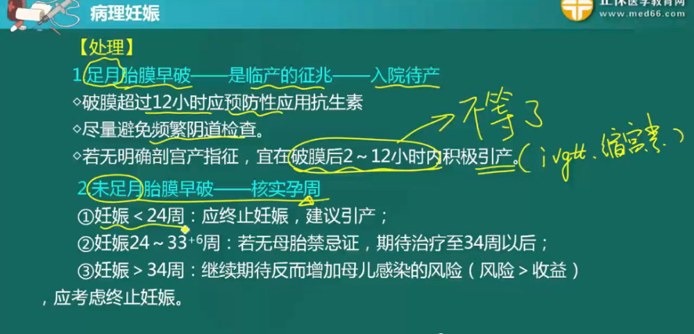 妊娠<37周發(fā)生——稱未足月胎膜早破(PPROM)?!?/p>