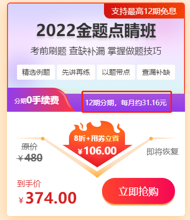 恰逢醫(yī)學(xué)教育網(wǎng)618年中鉅惠,婦產(chǎn)科主治醫(yī)師《金題點(diǎn)睛班》限時(shí)8折,折上用券更優(yōu)惠!支持最高12期免息!幫助大家考前沖刺,做題鞏固考點(diǎn)!去購課>