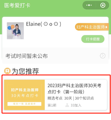 2023年婦產(chǎn)科主治醫(yī)師【醫(yī)考愛打卡】刷題小程序上線!微信掃一下就能隨時(shí)隨地刷題!每天都可以打卡哦~每天一個(gè)知識點(diǎn)+配套練習(xí)題~等你來練!速來參與!
