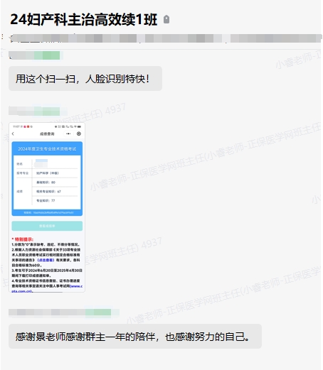 2024婦產(chǎn)科主治醫(yī)師考試成績已經(jīng)公布,網(wǎng)校收到了很多學(xué)員的反饋,其中有學(xué)員表示感謝景老師感謝群主一年的陪伴,也感謝努力的自己!快來一起看看吧!