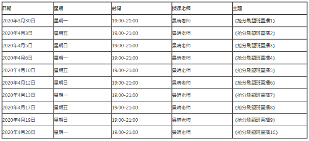 (課表為暫定安排,可能會因為某些因素有所調(diào)整,建議各位考生收藏本頁面,及時查看,避免錯過課程!)