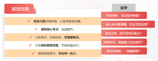 最后沖刺階段,可能有考生還在糾結(jié)到底是報(bào)班還是自學(xué),那先讓我們來(lái)對(duì)比一下兩種學(xué)習(xí)方式: