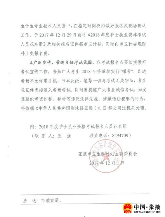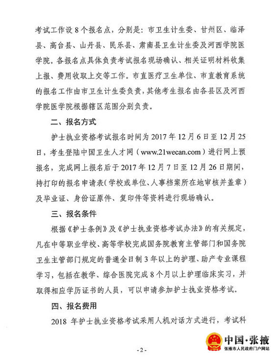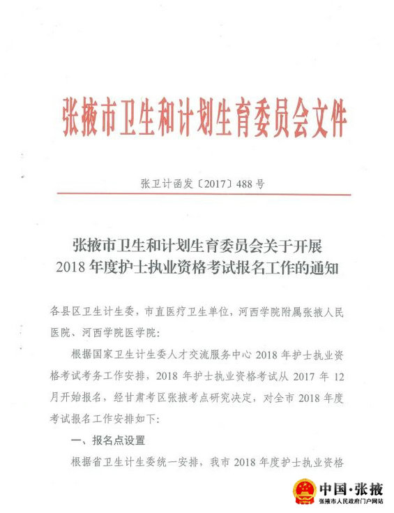 甘肅張掖市2018年度護(hù)士執(zhí)業(yè)資格考試報(bào)名公告現(xiàn)已公布,相信有很多網(wǎng)友對(duì)此比較感興趣,為此,醫(yī)學(xué)教育網(wǎng)的編輯為大家搜集整理了相關(guān)的信息,供大家參考,希望可以幫助到大家。