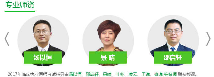 醫(yī)學(xué)教育網(wǎng)臨床執(zhí)業(yè)醫(yī)師考試輔導(dǎo)培訓(xùn)班匯集了湯以恒、景晴、邵啟軒等專業(yè)專業(yè)師資,他們授課細(xì)膩嚴(yán)謹(jǐn),重點突出,層次分明,詳略得當(dāng),思路清晰,語言簡練,通俗易懂,生動嚴(yán)謹(jǐn),飽含激情,邏輯性較強(qiáng),深受廣大學(xué)員喜愛!