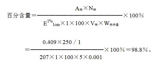 具體操作:精密量取本品5ml,置250ml量瓶中,加水至刻度,搖勻,以水為空白,在361nm波長處測定吸收度為0.409.