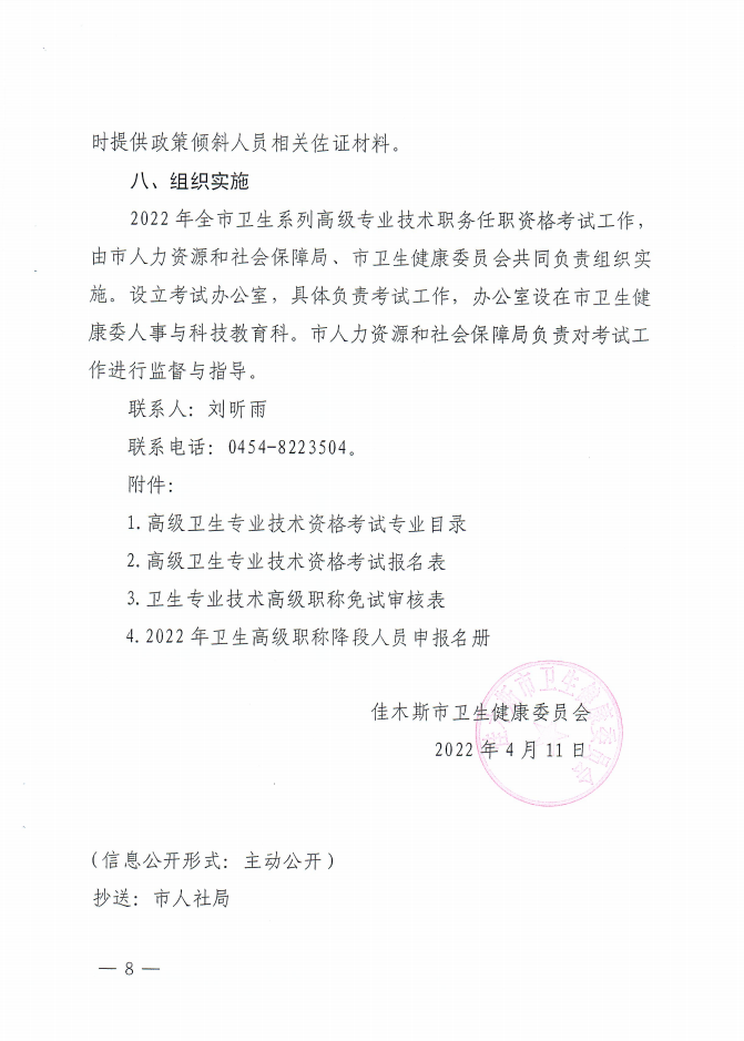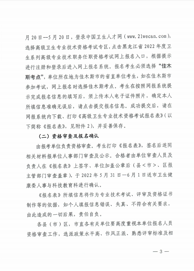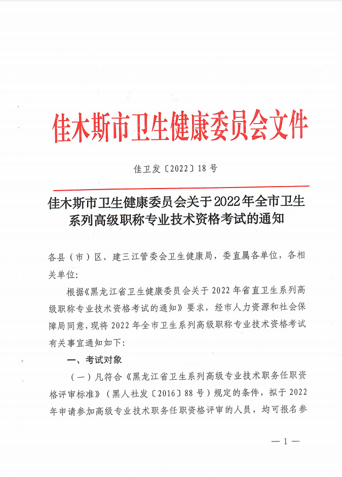 佳木斯市衛(wèi)生健康委員會(huì)關(guān)于2022年全市衛(wèi)生系列高級(jí)職稱專業(yè)技術(shù)資格考試的通知公布啦!醫(yī)學(xué)教育網(wǎng)整理具體內(nèi)容如下: