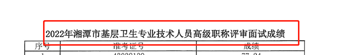 2022年湘潭市基層衛(wèi)生專業(yè)技術(shù)人員高級職稱評審的面試環(huán)節(jié)已結(jié)束,現(xiàn)將成績予以公布。