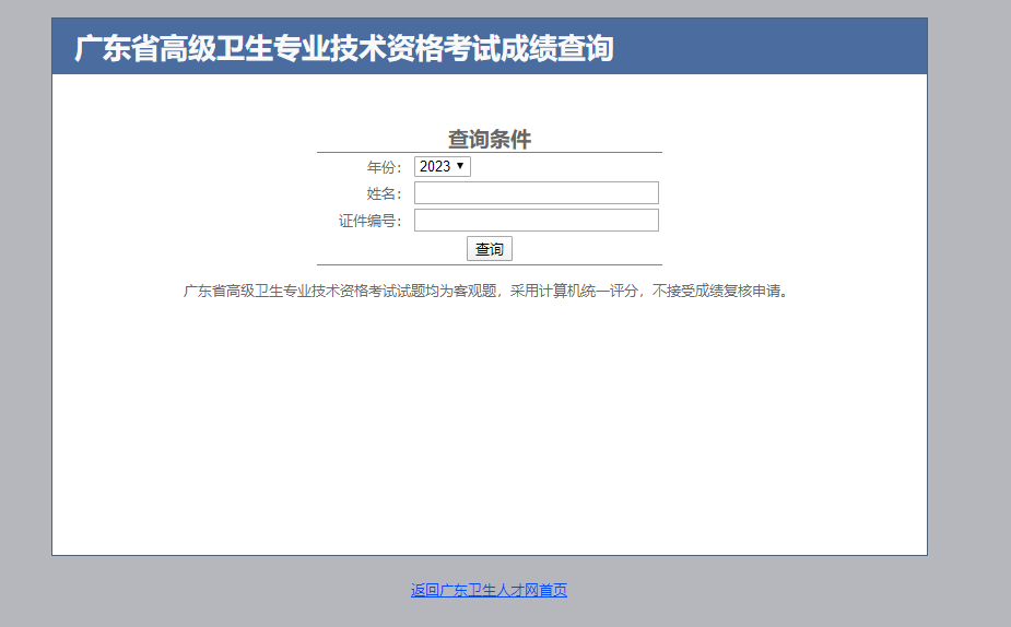 查詢?nèi)肟冢?a href="" target="_blank" textvalue="廣東省2023年衛(wèi)生高級(jí)職稱考試成績(jī)查詢?nèi)肟?gt;>>">廣東省2023年衛(wèi)生高級(jí)職稱考試成績(jī)查詢?nèi)肟?gt;>>