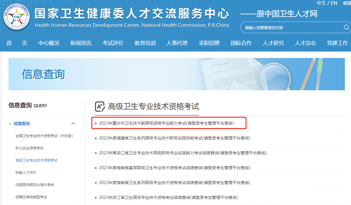 查詢?nèi)肟冢?a href="" target="_blank">重慶2023年衛(wèi)生副高級職稱考試成績查詢?nèi)肟?gt;>>