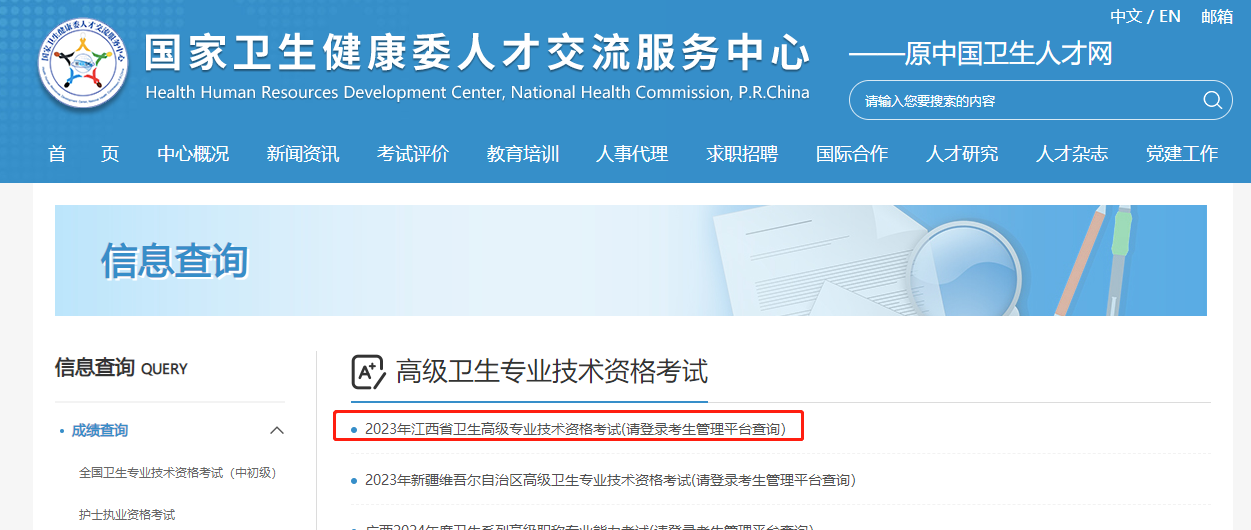 查詢?nèi)肟冢?a href="" target="_blank" textvalue="江西省2023年衛(wèi)生高級職稱考試成績查詢?nèi)肟?gt;>>">江西省2023年衛(wèi)生高級職稱考試成績查詢?nèi)肟?gt;>>