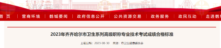2023年齊齊哈爾市衛(wèi)生系列高級職稱專業(yè)技術(shù)考試成績合格標(biāo)準(zhǔn)公布啦!醫(yī)學(xué)教育網(wǎng)整理具體內(nèi)容如下: