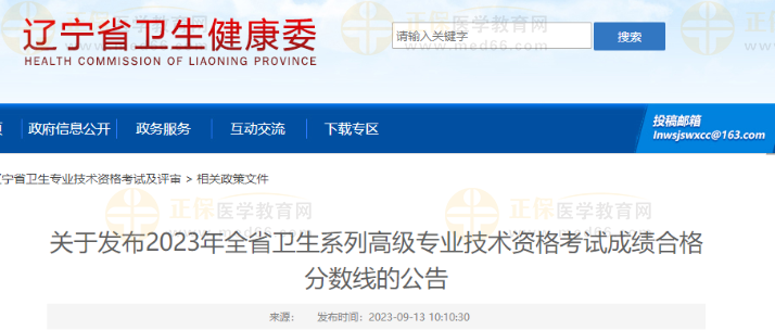 遼寧省衛(wèi)生健康委發(fā)布關(guān)于發(fā)布2023年全省衛(wèi)生系列高級專業(yè)技術(shù)資格考試成績合格分?jǐn)?shù)線的公告,醫(yī)學(xué)教育網(wǎng)整理具體內(nèi)容如下: