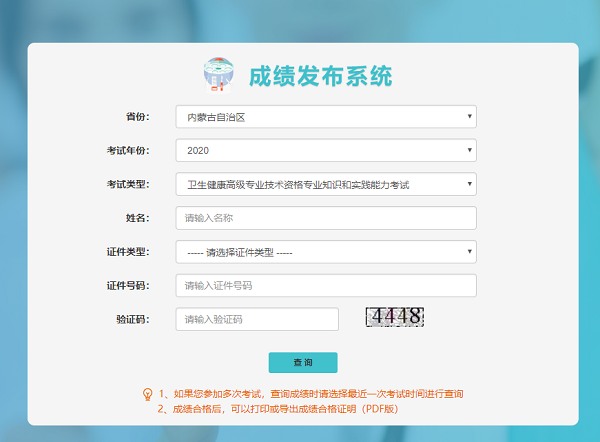點(diǎn)擊查詢:2020年內(nèi)蒙古衛(wèi)生高級(jí)職稱考試成績(jī)打印入口>