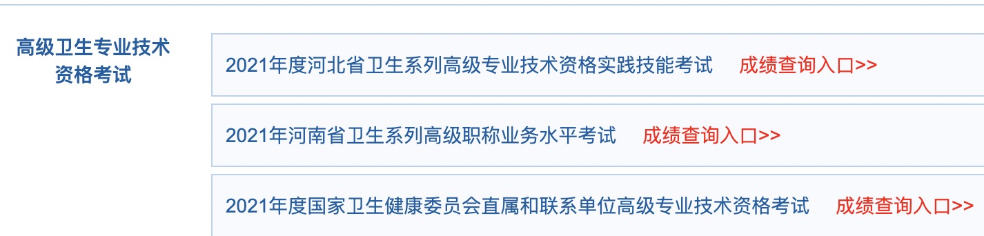查詢?nèi)肟冢?a target="_blank">河北高級(jí)衛(wèi)生專業(yè)技術(shù)資格考試成績(jī)查詢?nèi)肟?gt;>>
