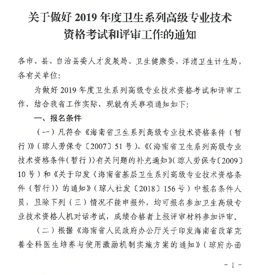 海口市關(guān)于做好2019年度衛(wèi)生系列高級(jí)專業(yè)技術(shù)資格考試和評(píng)審工作的通知公布,為了幫助大家了解,醫(yī)學(xué)教育網(wǎng)為大家搜集整理如下: