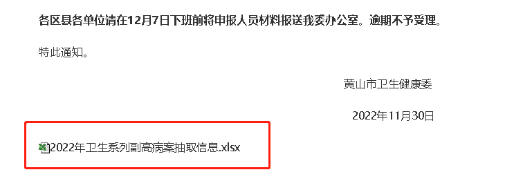 現(xiàn)將2022年高評(píng)申報(bào)人員的申報(bào)材料抽取結(jié)果公布附后(具體內(nèi)容見附件)。請(qǐng)各區(qū)縣各單位及時(shí)通知申報(bào)人員并做好申報(bào)材料收集和報(bào)送工作。如申報(bào)人員對(duì)公示內(nèi)容有異議的請(qǐng)和當(dāng)?shù)貐^(qū)縣衛(wèi)生健康委或者單位人事部門聯(lián)系咨詢。