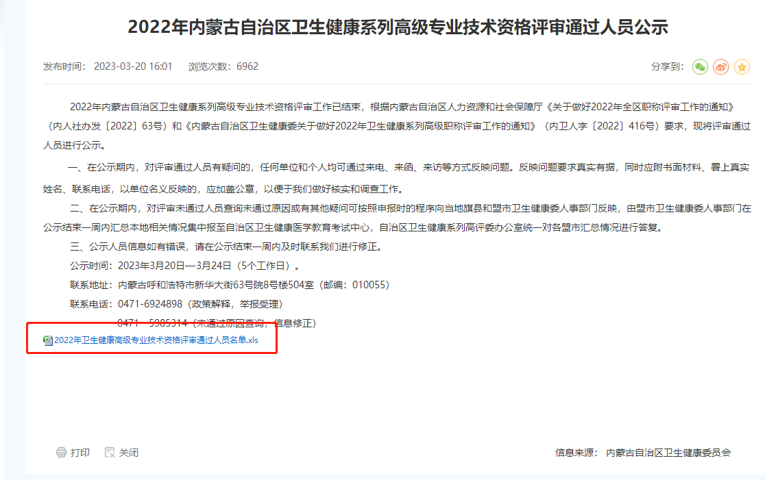 提示:因涉及用戶隱私問(wèn)題,醫(yī)學(xué)教育網(wǎng)不展示具體人員名單,具體名單前往內(nèi)蒙古自治區(qū)衛(wèi)生健康委員會(huì)網(wǎng)站通知查看。