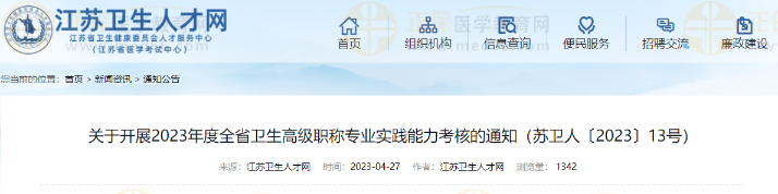 江蘇衛(wèi)生人才網(wǎng)發(fā)布關(guān)于開展2023年度全省衛(wèi)生高級職稱專業(yè)實踐能力考核的通知(蘇衛(wèi)人〔2023〕13號),醫(yī)學(xué)教育網(wǎng)整理具體內(nèi)容: