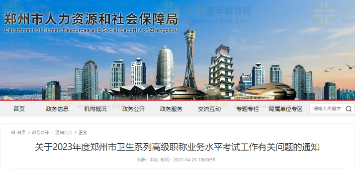 鄭州市人力資源和社會保障局發(fā)布關(guān)于2023年度鄭州市衛(wèi)生系列高級職稱業(yè)務水平考試工作有關(guān)問題的通知,醫(yī)學教育網(wǎng)整理具體內(nèi)容如下: