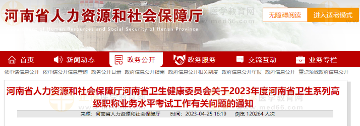 河南省人力資源和社會(huì)保障廳河南省衛(wèi)生健康委員會(huì)關(guān)于2023年度河南省衛(wèi)生系列高級(jí)職稱業(yè)務(wù)水平考試工作有關(guān)問(wèn)題的通知公布啦!醫(yī)學(xué)教育網(wǎng)整理具體內(nèi)容如下: