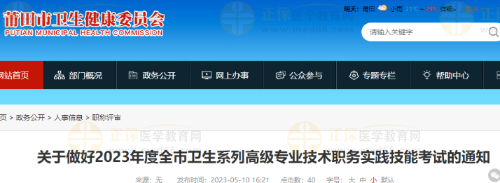 莆田市衛(wèi)生健康委員會發(fā)布關于做好2023年度全市衛(wèi)生系列高級專業(yè)技術職務實踐技能考試的通知,醫(yī)學教育網(wǎng)整理具體內(nèi)容如下:
