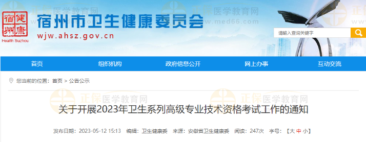 宿州市衛(wèi)生健康委員會發(fā)布關(guān)于開展2023年衛(wèi)生系列高級專業(yè)技術(shù)資格考試工作的通知,醫(yī)學(xué)教育網(wǎng)整理具體內(nèi)容如下: